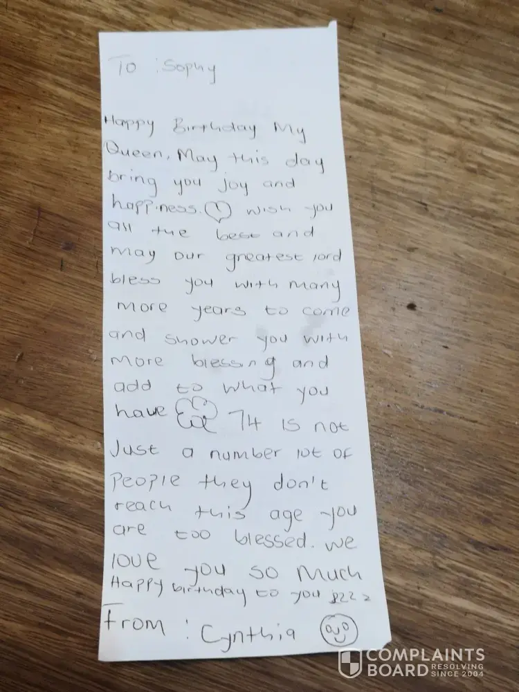 Today was my moms birthday and she wrote this note on the back of the slip.