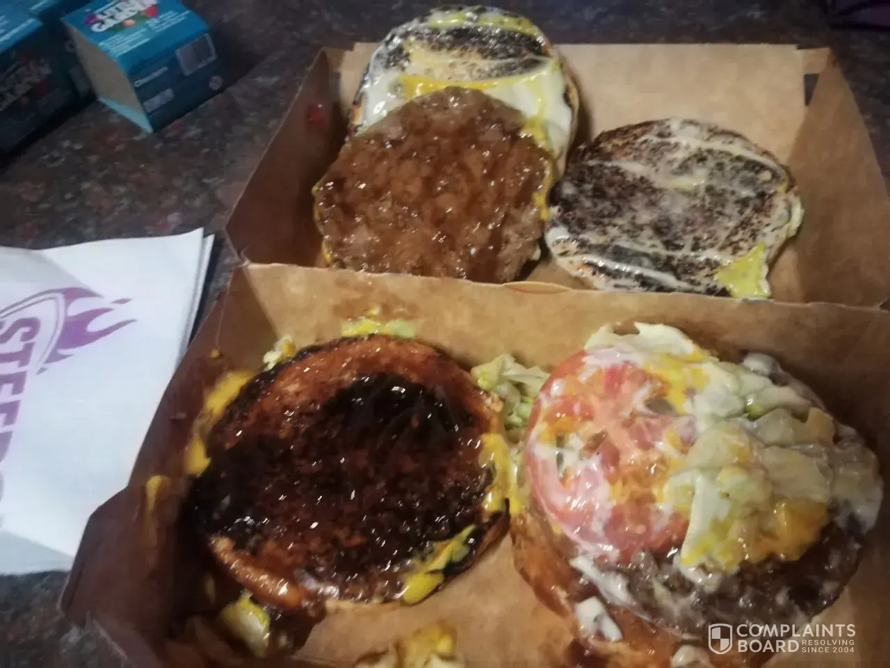 On 30 May 2018 at 16h05 I ordered a Wacky Wednesday Special at Steers. My order number was 1299. I received my take-away order 10 minutes later. When I got home I smelled a strong burn odour. When I opened the burger box, I checked and saw that the buns was burnt badly. Needless to say, we could not eat the buns and also had to throw away the lettuce as it tasted like burned bread. No cheese on the burgers as well.