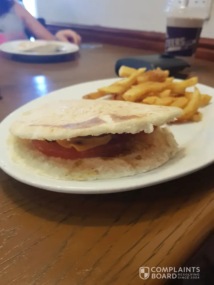 I could have made a better Pita 'burger' at home! It took 4 people from the kitchen to understand how to make this and then it was 'thrown' together with hardly anything!