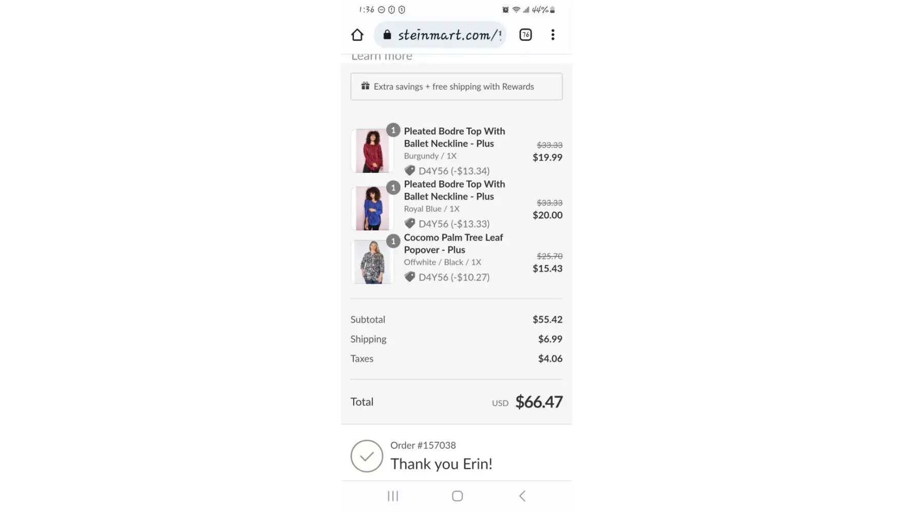 On Sat 23 Jan 2021 I ordered a dress from Stein Mart on line. As of this date (8 days later) I have not received acknowledgement of my order or shipping information, however, the charges were posted to my Discover card account on the 23rd. Please cancel the order and credit my account accordingly.