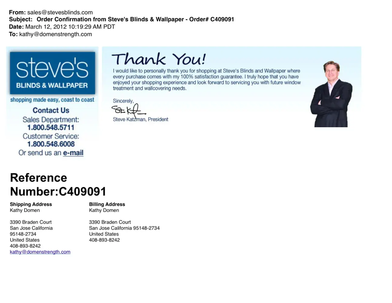 3. Steve's Blinds & Wallpaper emails