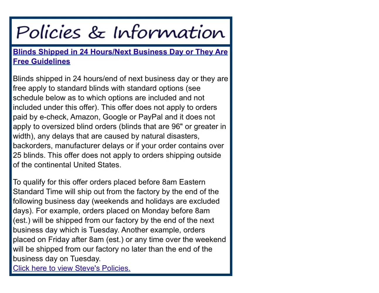 http://www.stevesblindsandwallpaper.com/sb_OurPolicies.aspx