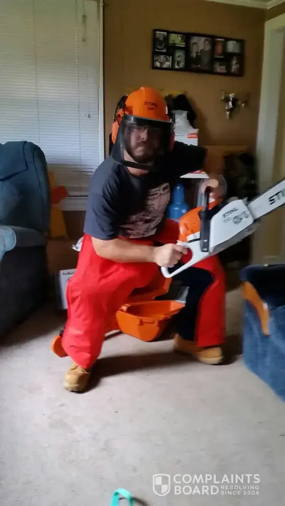 My son George Docteur received a stihl chain saw along with the safety gear. He uses a chain saw to help people in need of fire wood. He believes in your product and is very happy to have one. Thanks Donna. Waterbug_59@yahoo.com