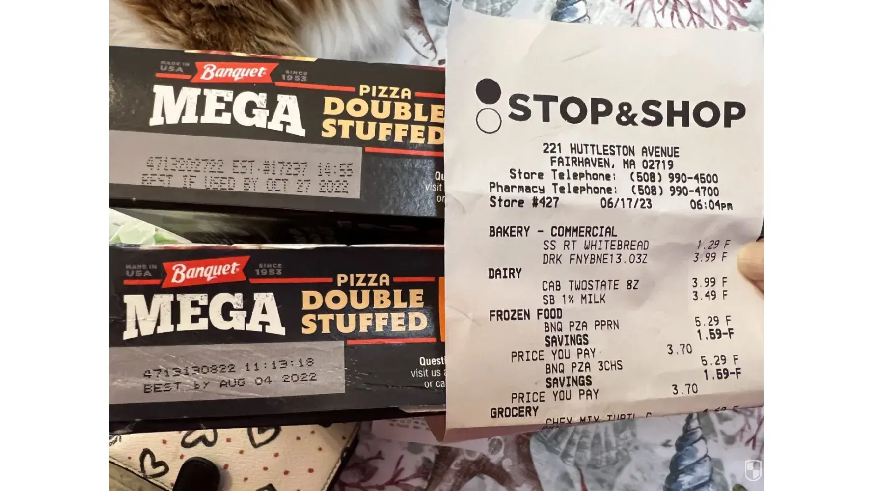 I was in Fairhaven Massachusetts Stop & Shop yesterday for a few items and while I was there I decided to pick up something for supper. I purchased 2 packages of 2 slices of frozen pizza. It was Banquet pizza. When I got home and opened the first box it was all freezer burn and disgusting looking. I then check the box only to find they were both past the best if used by date. Not by 1 or 2 days, weeks, months but years. I didn't think to check the date in this fine high end establishment so I had to go all the way back to the store to return them. Wasted all that gas not to mention my time. I didn't read your terms & conditions but if you want to spread this around be my guest.