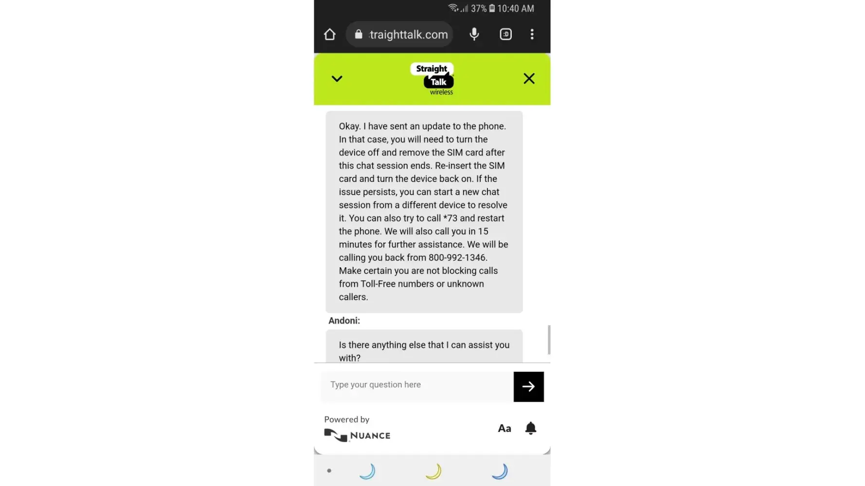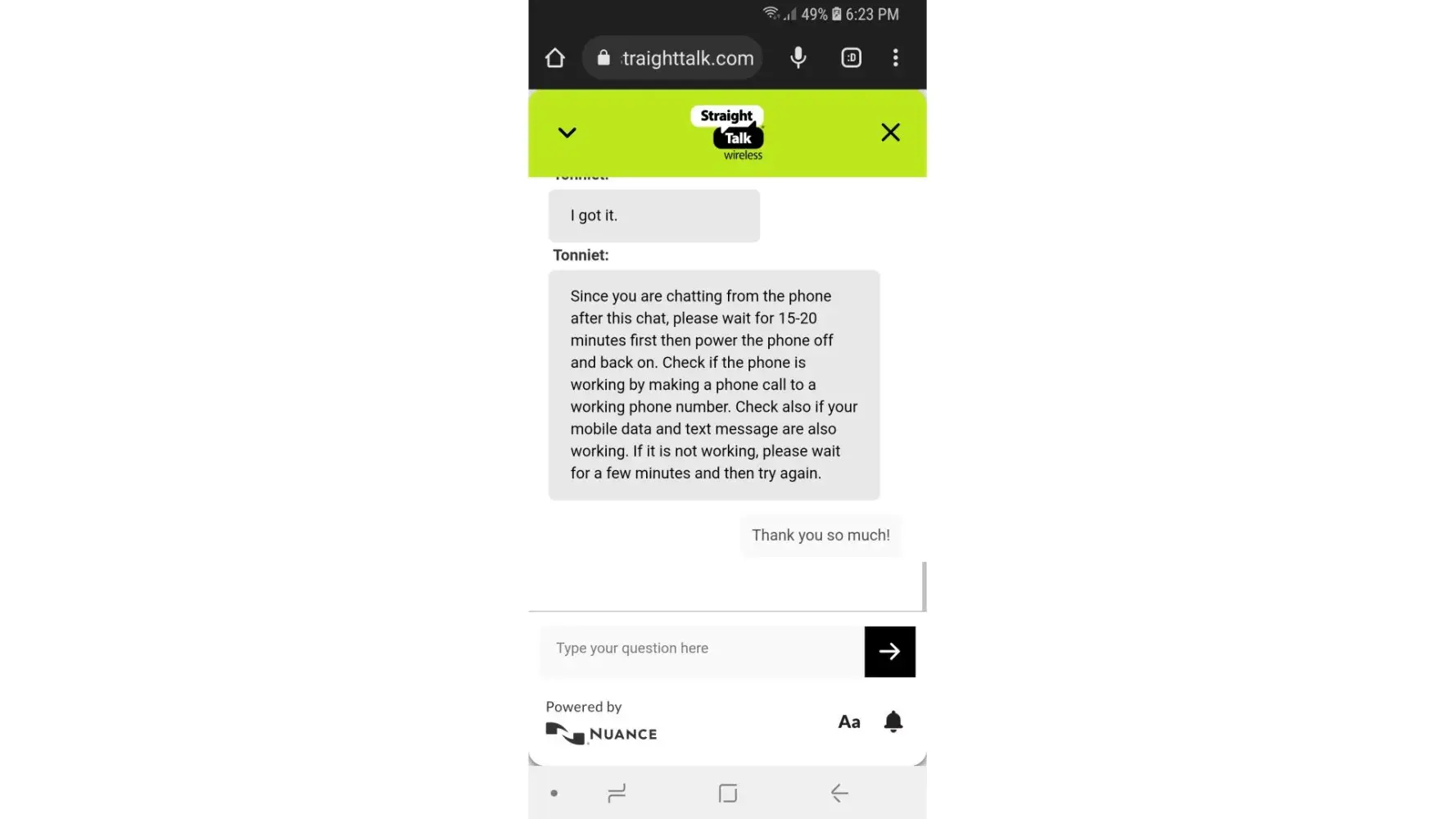 I live chatted another representative who told me to restart my phone and tell them if it fixed it, of course I couldn't, I was on the only phone I have.