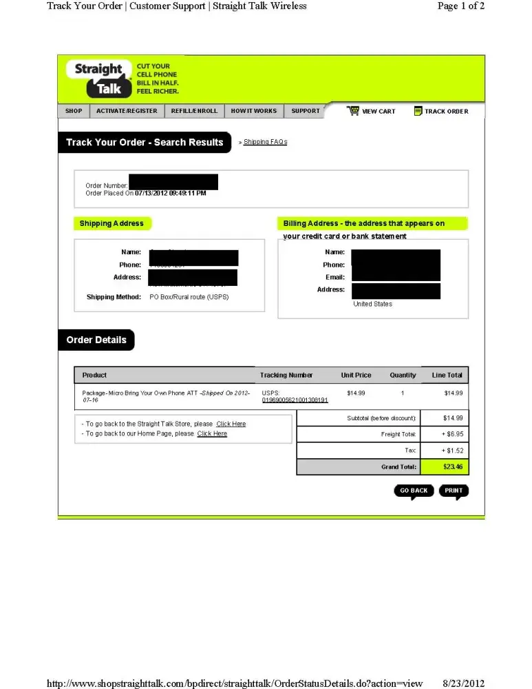 I ordered an AT&T Micro SIM card from Straight Talk. I received a regular replacement SIM card from them in the mail. It came with a paper with the Tracfone, Net10, and Straight Talk logos at the top, and it started by saying, "...enclosed you will find your replacement SIM card." After talking to a girl on the phone for a half hour, I was told that she couldn't find that SIM card number in their system. They didn't know where I got it from. She said that my Micro SIM card was mailed to my address and delivered on 7/19/12. I had the check the SIM number for what she said they sent me, and said it had been activated. Her idea was that someone swapped out my mail once it was delivered. Really? When I asked if I could report it stolen and have them cancel it, she told me I couldn't do that because it wasn't activated under my account. Uh, hello? How does that make any sense? She said Straight Talk would do nothing for me. They would not send me another card and there are no refunds on SIM cards. Of course, if I want to use their service, I will need to order another Micro SIM card. Yeah right!