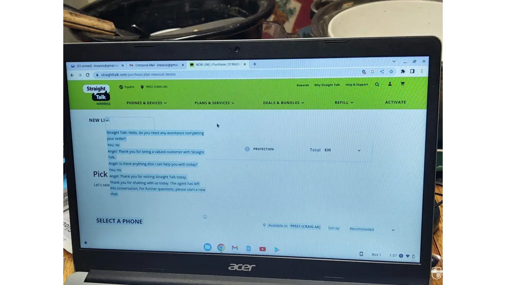 I have contacted a false/deceptive advertising law firm for your unwillingness to unlock the phones that you fraudulently sold me through your webpage. I was willing to let the $90.00 service plan that I bought go, but now because your agents want to charge me $170.00 each on top of the phone charges to unlock them, I am left with no choice other than to pursue legal action. They tell me I have to have 60 days of active service yet tell me you don't have service here, so why does your webpage ask me for my zip code and tell me here are the phones and plans available for 99921 Craig, Alaska?