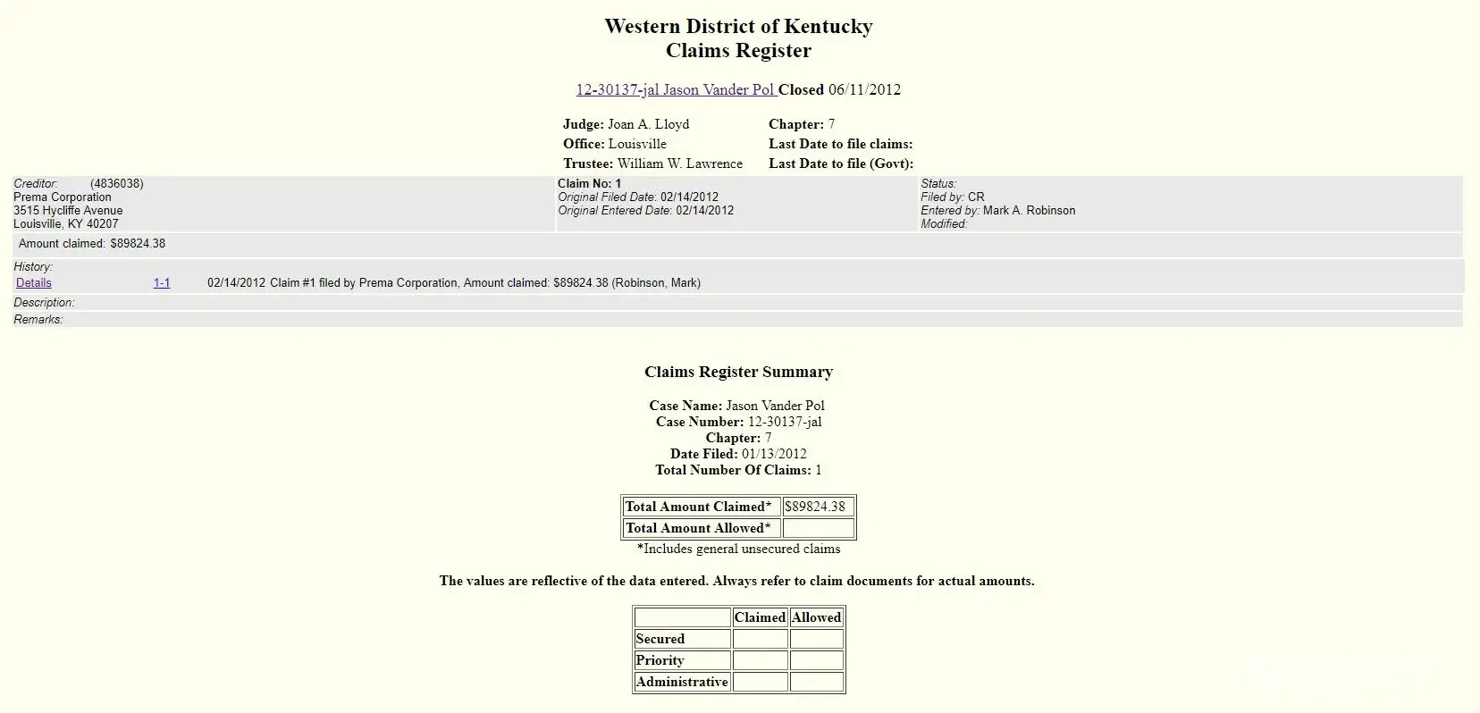 Mr. Vander Pol has no credibility in giving financial advice. He had Bankruptcy Issues that totaled $89, 824.38. This information is PUBLIC COURT RECORD and is unaltered. 12-30137-jal "Jason Vander Pol"​ Case type: bk Chapter: 7 Asset: No Vol: v Judge: Joan A. Lloyd Date filed: 01/13/2012 Date of last filing: 06/11/2012 Debtor discharged: 04/17/2012 Date...