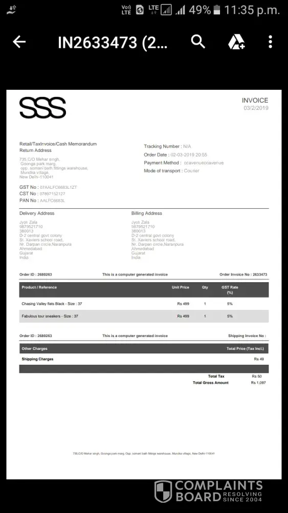 I ordered a shoes around 2 months back! Firstly SSS has the world's slowest delivery, don't know from where do they import products. Like really 21days? And forget that, what you receive is a wrong size, then apply for return that too get picked up after 10 days, then again new replacement that too faulty abd what they demand is delivery charge? What the hell? And now after 3 times returning you get s credit note of the mrp only, without all those [censor] delivery charges i have paid. And when i chose new product against that i have to again pay delivery charge. Thats also bearable, when i paid the money through my acc. The money got deducted and then I received a mail of non successful payment. Guys are you mad or what? You are just a amateur company who dont know how to operate and making fool out of people. Will never ever recommend this website to anyone nor will i shop here again ever! Worsttt experience!