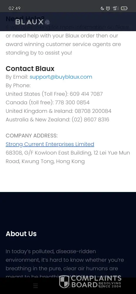 21 Jan 2021-Contacted Blaux and was told to return the products to Strong Current for a full refund. Spent $71.30 to post the items back to Strong Current