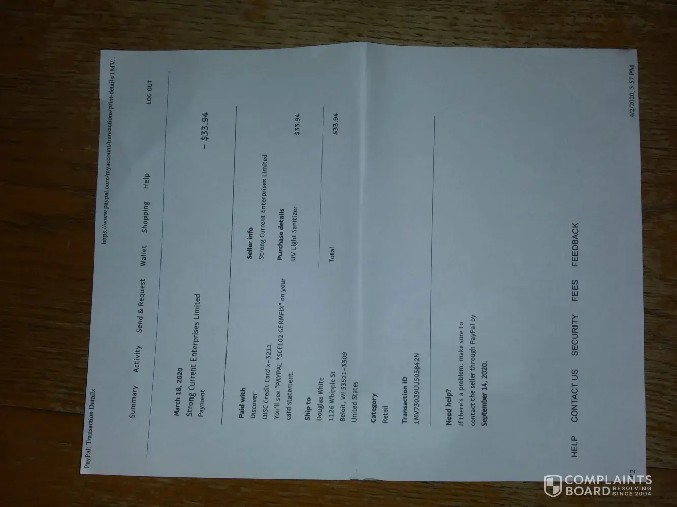 I ordered the productwhich is a UV light sanitizer from Strong Current Enterprises and paid for it through PayPal on 3/18/2020. I have not received it. It was supposed to be here about 3/27/2020. I would like to know the reason for the delay. If I don't receive it soon I would like a full refund.