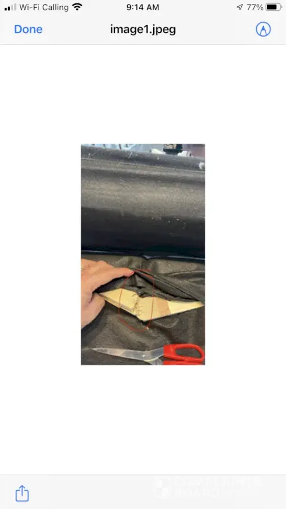 For your reference only. As per requested for the following orders delivered on 31-March-2023. The sofa quality was completely unsatisfactory. It created wrinkles on the seat immediately after a short time being seated. It was completely unmatched as the one at the showroom located at Richmond Hill store. Enclosed with the picture for your reference only. Please return the above product and arrange a new replacement and free delivery as requested for your reference only. Please contact me directly for further update and follow up procedure.