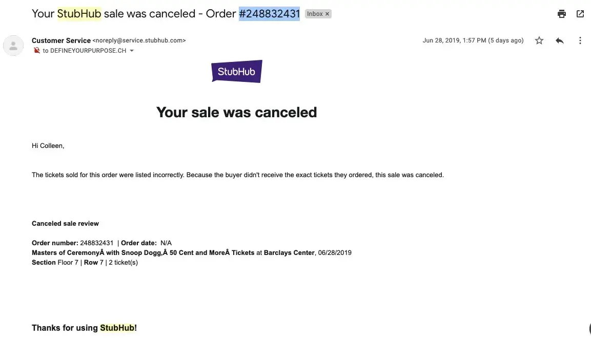 I just read i should have called StubHub when we were booted but who the heck would know that.