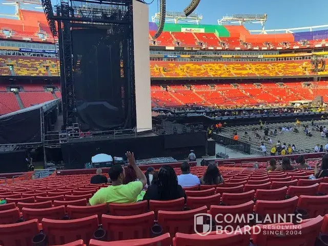I purchased four tickets for the Beyoncé and Jay Z concert on July 28, 2018 at Fedex Field Stadium on StubHub. The tickets were purchased for section 104 Row 23 Seats 13-16 for $271.62 a piece. Once arrived at the seats for the concert, I was absolutely disappointed in disgusted that the seats were even sold. You couldn't even see the stage, all you got was a side view of the stage. Where the seats were located, you couldn't even see the screens to watch the concert. I will never again purchase tickets from StubHub. Completely disappointed and a complete waste of my money. I have been trying to find a way to contact StubHub to see about reimbursement of funds with no success. These tickets should have never been sold, and at the price sold was completely absurd.