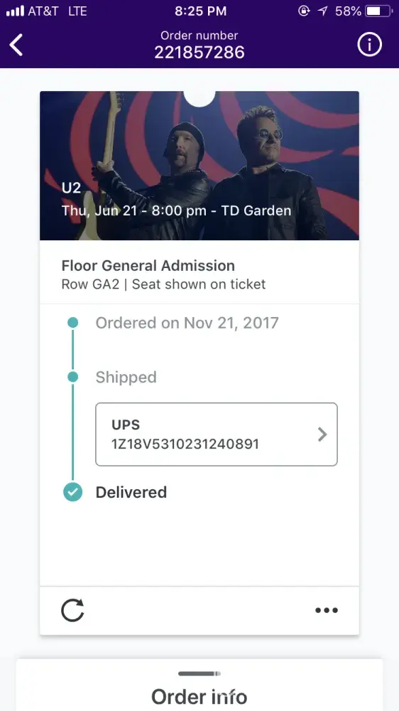 I bought the U2 ticket for months and today there was the concert in the Td garden today and I forgot the ticket, but the company did not help me anything and TD garden said they are not part of StubHub ... so be careful of buying tickets with StubHub, it does not help you and does not provide the bar code in your application... I lost money and time.. i took day off, I'm angry