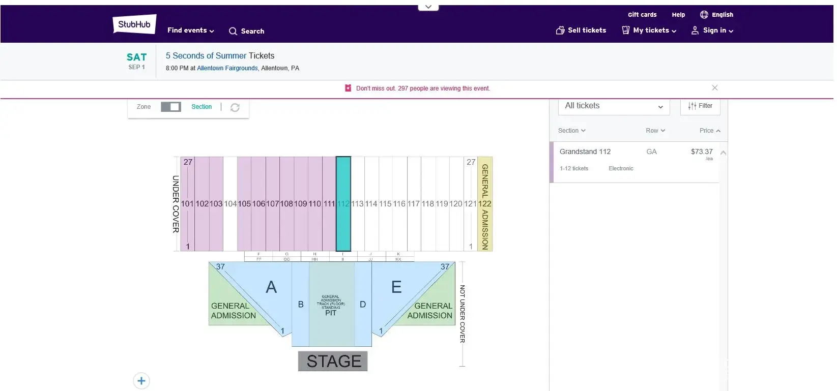 StubHub ticket purchase