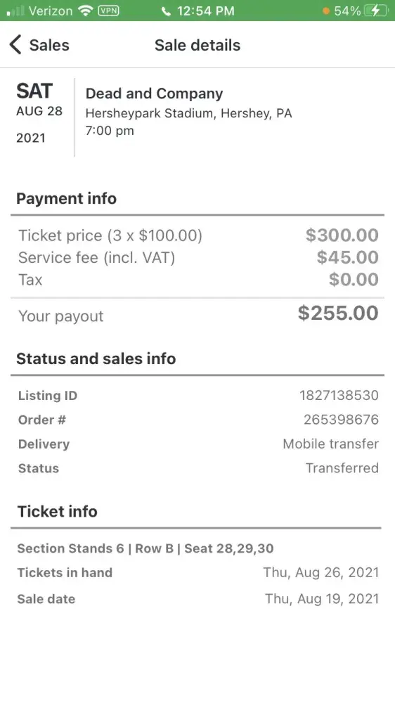 sold tickets for a concert that took place september 1, 2021 and was supposed to be paid 5 to 8 days after the concert using paypal and have not received payment to date. was for an Eagles concert in washington dc. cannot get through to the number listed and no email is available to contact them. very unhappy with their website!