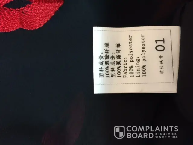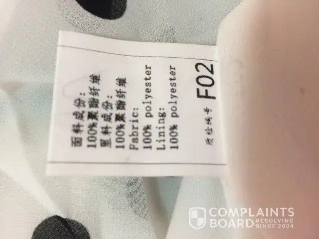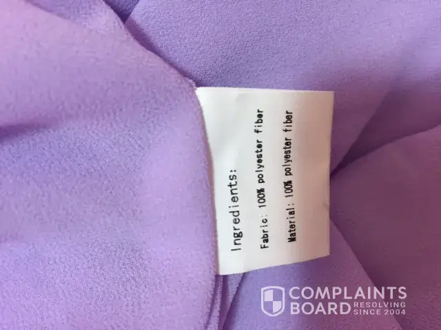 Then some other orders with materials described as Chiffton, but label in the dresses are 100% POLYESTER!