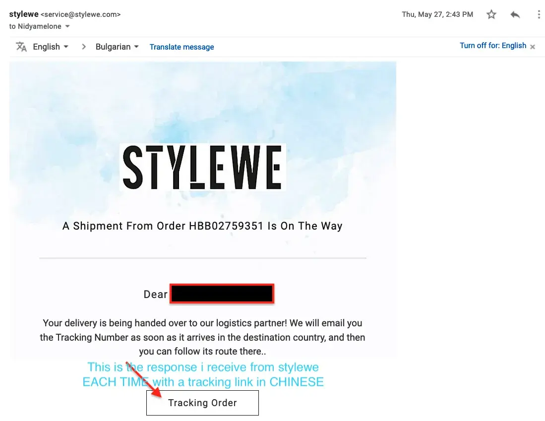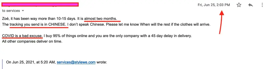 There are many items I’ve purchased from this company, have returned 2 other items for poor quality with no problems so I’m quite disappointed on their handling of this issue. I’m going to think twice and twice more before ordering from Stylewe in the future.