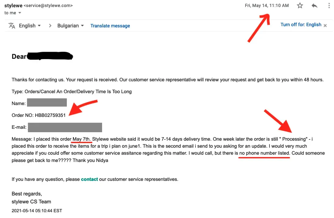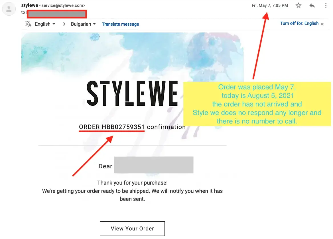 Stylewe.com is a complete scam. I placed an order on May 7, 2021. After six emails and 3 months later, there is no merchandise, no refund, no number to call, and no longer any replies from STYLEWE. Dont seem to be able to upload images to this review, but i have all the completely useless standard email replies from STYLEWE: " your order has been shipped, here is the tracking number. The link info IN CHINESE.
