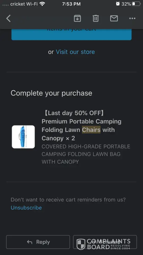 I ordered the chairs as well and cancelled the order and contacted pay pal, but they did nothing about it. These fraudulent people took my my money and sent two empty bags