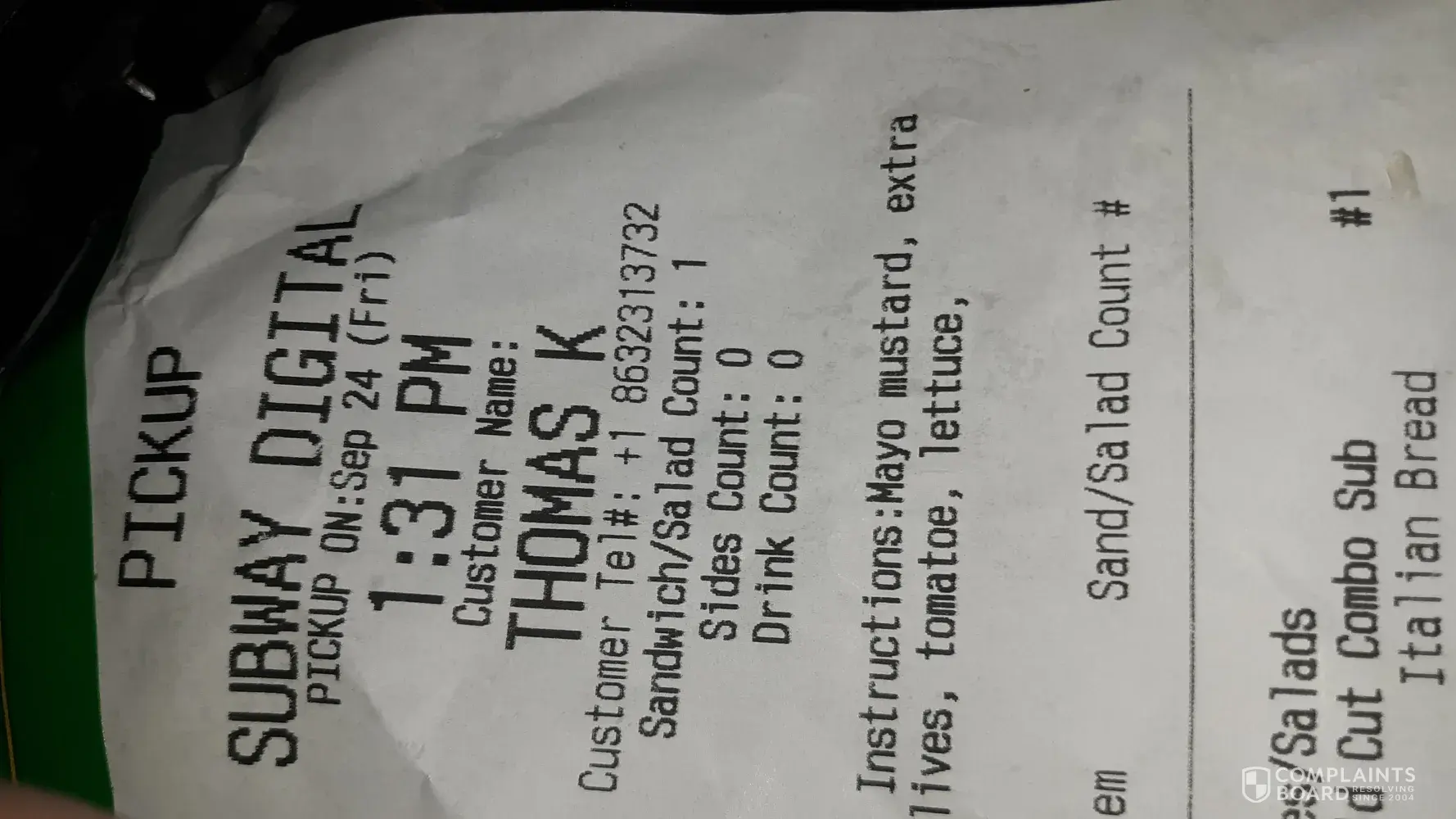 Read full complaint and 3 commentsPaid twice for one ft long sub