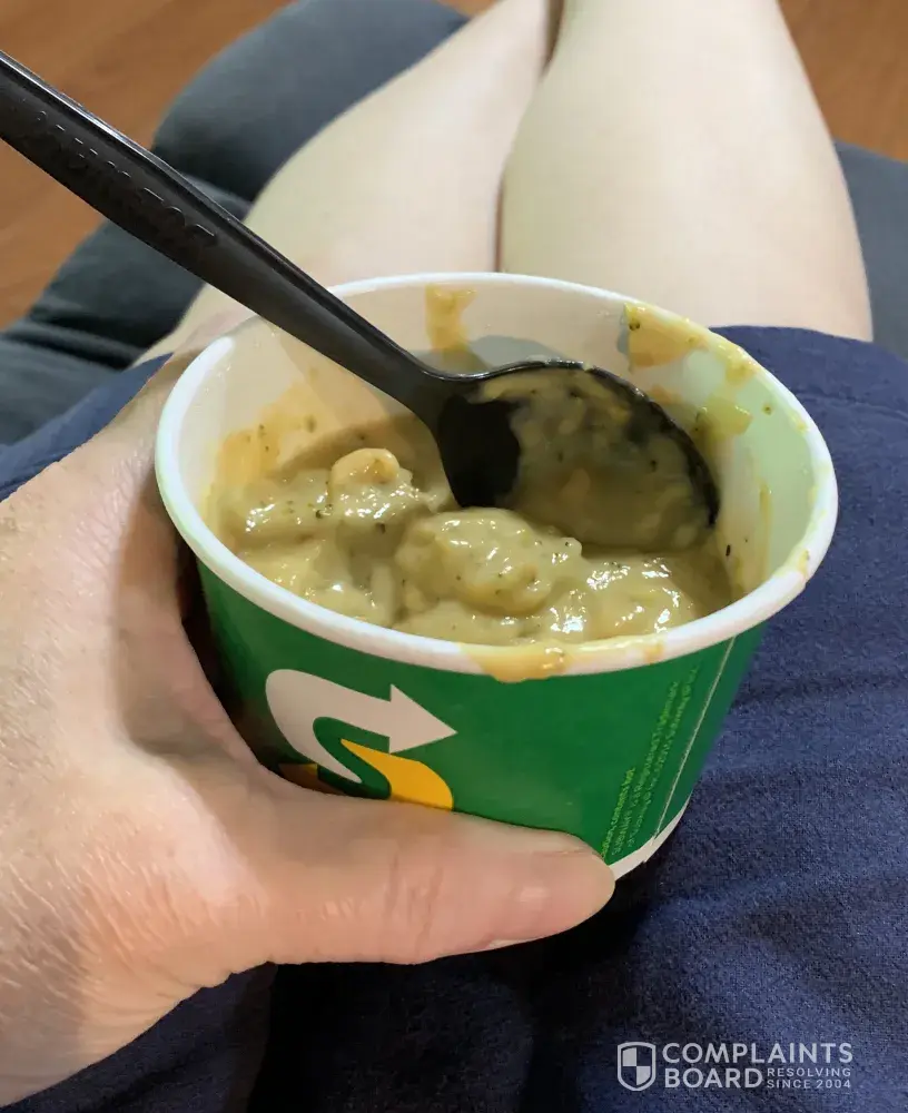 I ordered a bowl of broccoli and cheddar soup to go and I got less than half a bowl and it looked less than appetizing. I got home to nasty smelling soup that looked horrible. We eat with our eyes. This subway shop was in Alexandria, Louisiana on Mall dr. I also ordered 2 wraps one was a beef and cheese wrap which tasted fine but could have been better and one was a chicken Caesar wrap which also was okay. I have been to this location several times and never had an issue till now. I won't go back.