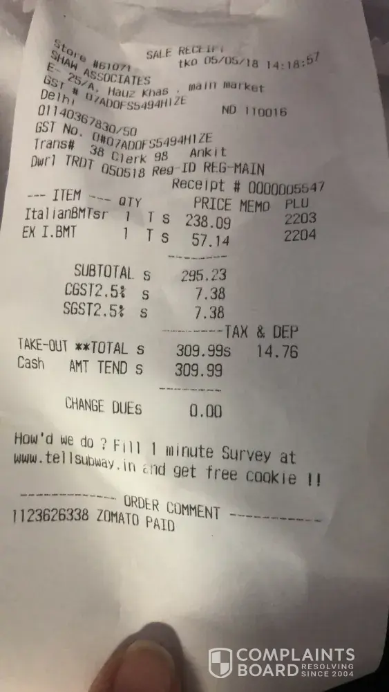 I did call number on receipt, talked to someone that said they were over her and would call the owner and have him call me! Well I bet you already know I haven't heard back from no one SUBWAY I'M DONE ! So sad I love your sandwiches was picking up three that day ! 😌 My husband pastors in the city our church have used you as well on occasions. Oh well do better in the future please choosing your employees for your customers's sake