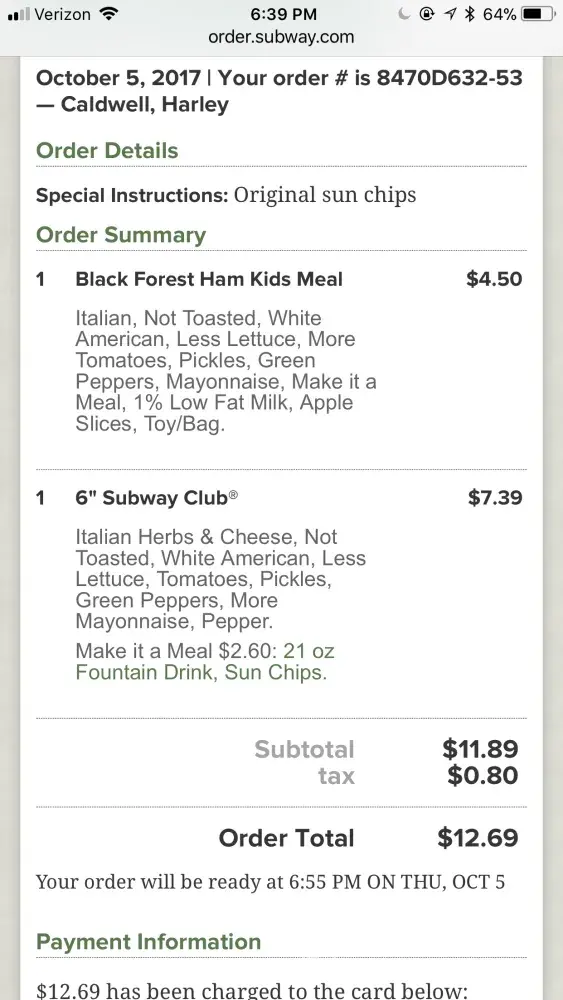 Anyway, I have a local Subway near my home which is in walk and riding distance. I visit them frequently.