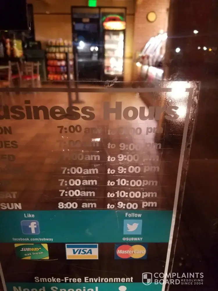 And on a side note, there is a laundry mat attached to this subway store, and the subway employees are forced to clean it while receiving no additional pay. If the laundry mat is not cleaned to the owners satisfaction we are reprimanded and can even have our hours cut at subway. We are employed by subway, to work at the subway store, but are forced to also work at a totally separate business with no compensation... I'm pretty sure this is very illegal.