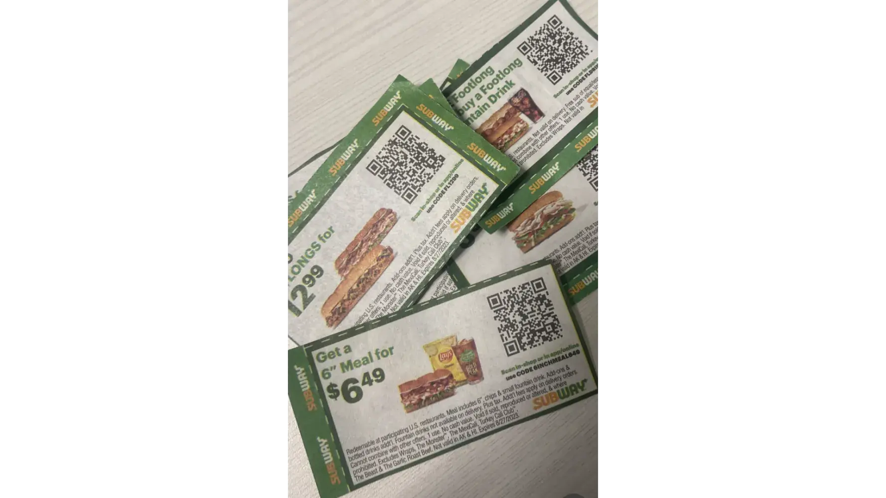 Every few months We receive Subway coupons in the direct marketing packet.