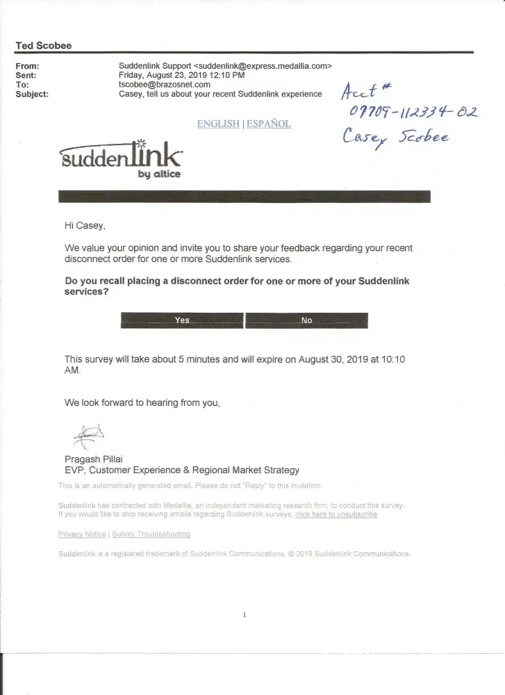 I called last month about my bill. I intended on discontinuing service and my call got transferred. I spoke with a man who looked at my bill and offered me 100 on my internet speed for same price as the 50 and then told me my cable bill would be lowered and I was looking at 150.00 bundle price so I said ok and decided to keep the service. Yesterday, I got my bill and it is not cheaper! I have looked into Santa Rose Fiber for internet and dish network for my TV service and it is way cheaper than Suddenlink. Today I have received information that my last day of billing is Feb 29th. So basically you got one more month with me on my dime. Why would you have an employee lie to their customer and tell them the bill will be lower? Why do new customers get a better offer than someone like us that has been with your company for SEVERAL years! Look at the length of time we stayed with you. Very disappointed in Suddenlink.