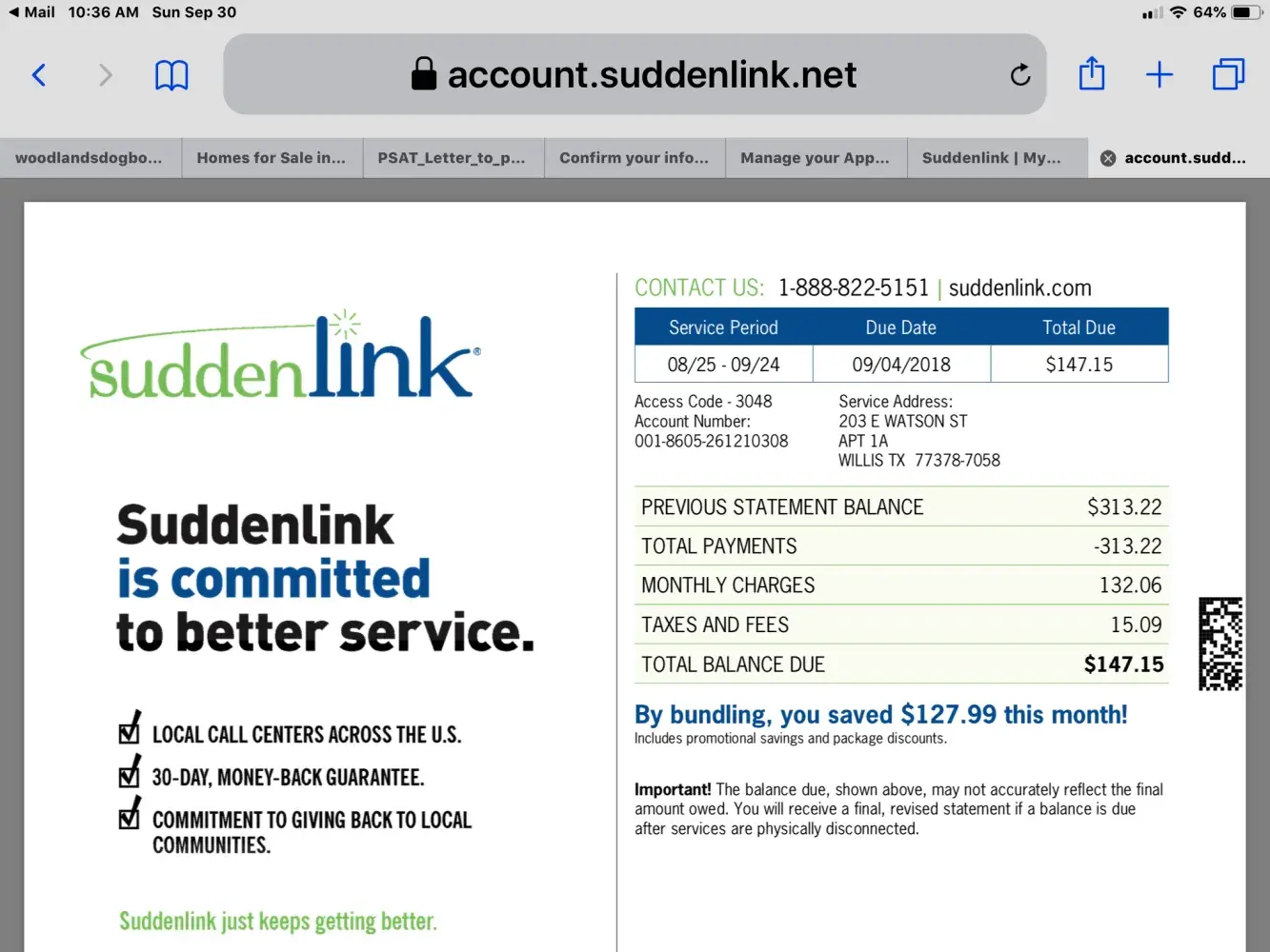 My name is Bobbye Phillips, I am DEAF, address 203 E. Watson Willis, Texas 77378. My account number [protected] my pin for that account is 3048. Just got this service middle of June 2018 . I ask for internet and cable service, it show 105.99 which add fees and tax end up 163.99 I do understand the bill amount. But why is it chargering me 185.05 then now chargering me today 277.87? The bill shouldn't be adding, it should have been same amount every month. Thank you for reading this. Have a wonderful day...