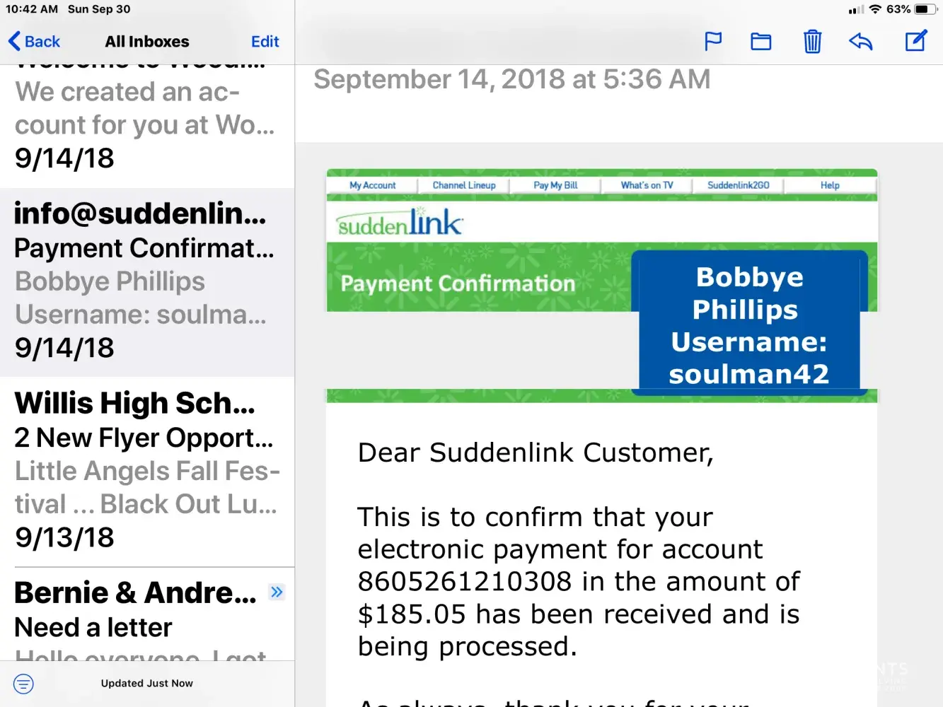 I have had Suddenlink for a little over a year now and my bill was $75 -$90 start out turned out every month I had a technician out every two weeks, and every tech had said, and also had seen it glitch, but there was nothing more they could do, so a year later of doing this now paying 190.00 a month, and not once out of the year did I get CREDITED, finally I busted them out and hey I atleast got a whoopin 4 day free $10.00 off card for the whole year yuppie, and no managed could ever call, I called in yesterday to see when my Bill's due the tech said Oct 10, 2018 i repeated it back twice or 3 times and still yes well while on phone with they i had already been cut off and and noone knew on 10/04-2018 still 6 more days I had til cut off, managers are rude they call u a liar I sware y'all r scammie