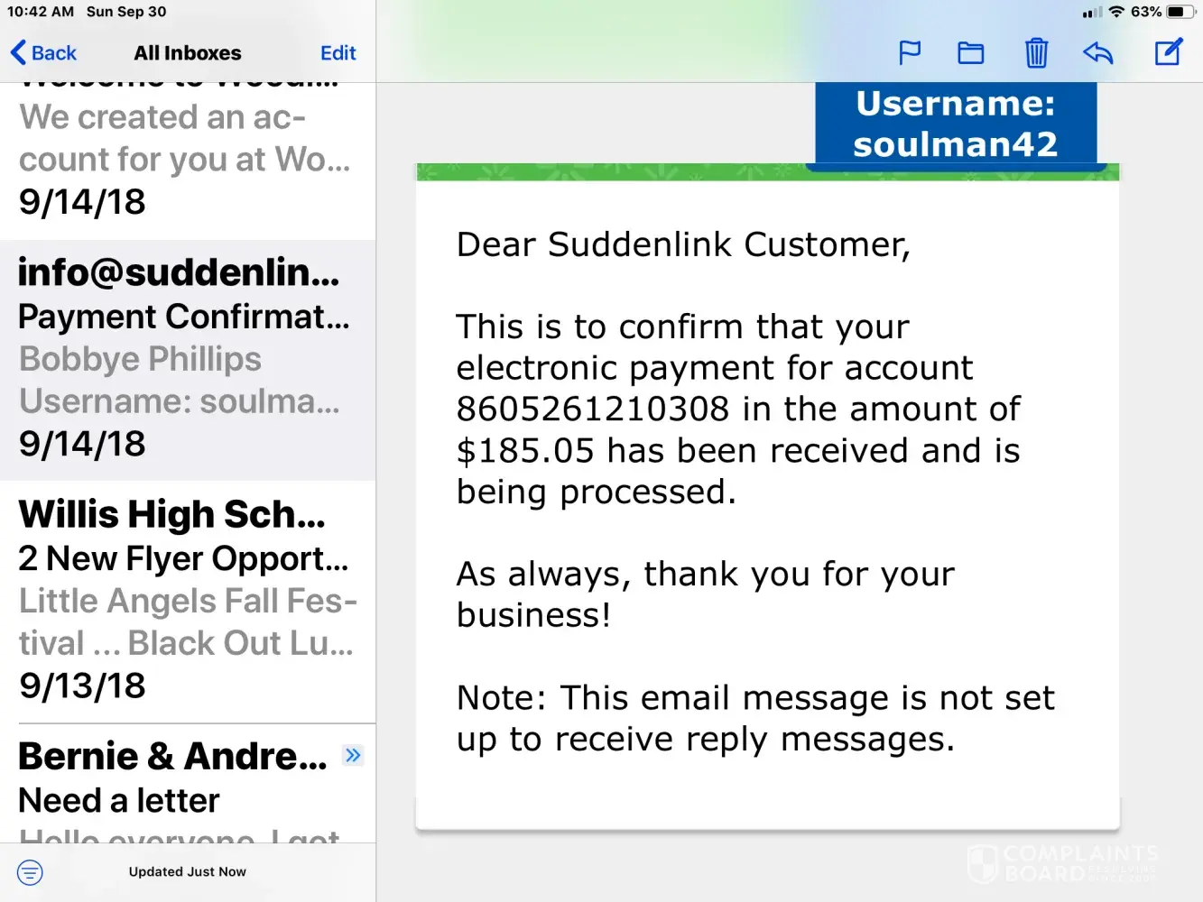 Here's my same complaint to Suddenlink: