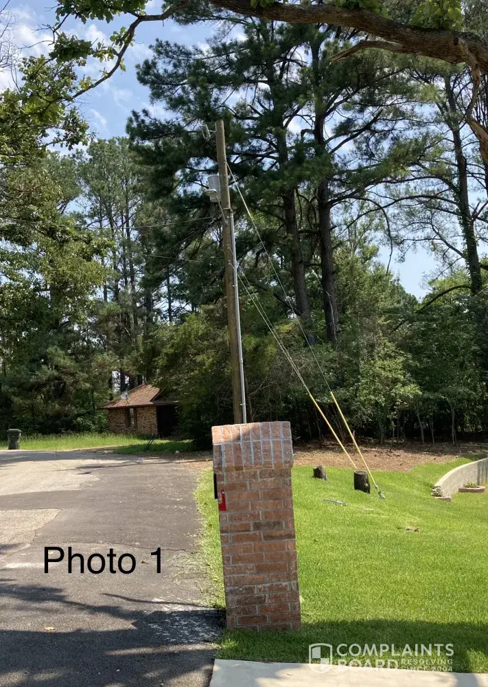 I am Stephen Knipe and my address is 2818 Aurora St. Tyler, TX 75701. My next door neighbor is at 2826 Aurora St. and is also involved in this problem. Both houses are new this year and are seen in photos 6 and 7. We are at the end of the telephone pole line. As you can see in photo 1.