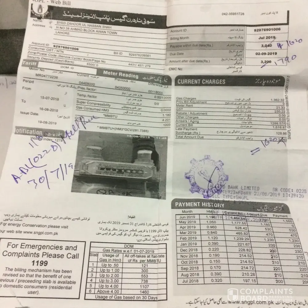 I have paid in m/s. Allied bank limited, mall branch, Lahore on June 25, 2019 but still this bill is appearing in August after making rectification (2 times) from Johar Town office (sui gas).