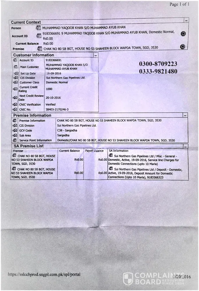 Confidential Information Hidden: This section contains confidential information visible to verified Sui Northern Gas Pipelines [SNGPL] representatives only. If you are affiliated with Sui Northern Gas Pipelines [SNGPL], please claim your business to access these details.
