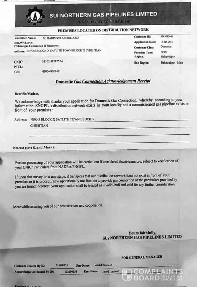 As a loyal customer of SNGPL, I believe in the commitment of the company to provide reliable and uninterrupted gas services. I trust that appropriate actions will be taken to rectify the current situation and prevent such inconveniences in the future.