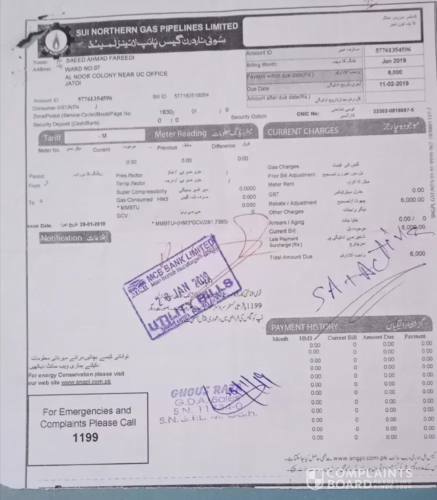 👉  Submit a complaint about Sui Northern Gas Pipelines [SNGPL]