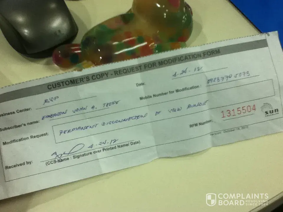 here is the attachment of the CUSTOMER"S COPY - REQUEST MODIFICATION FORM as a reference that I cancelled the BROADBAND on the said date.