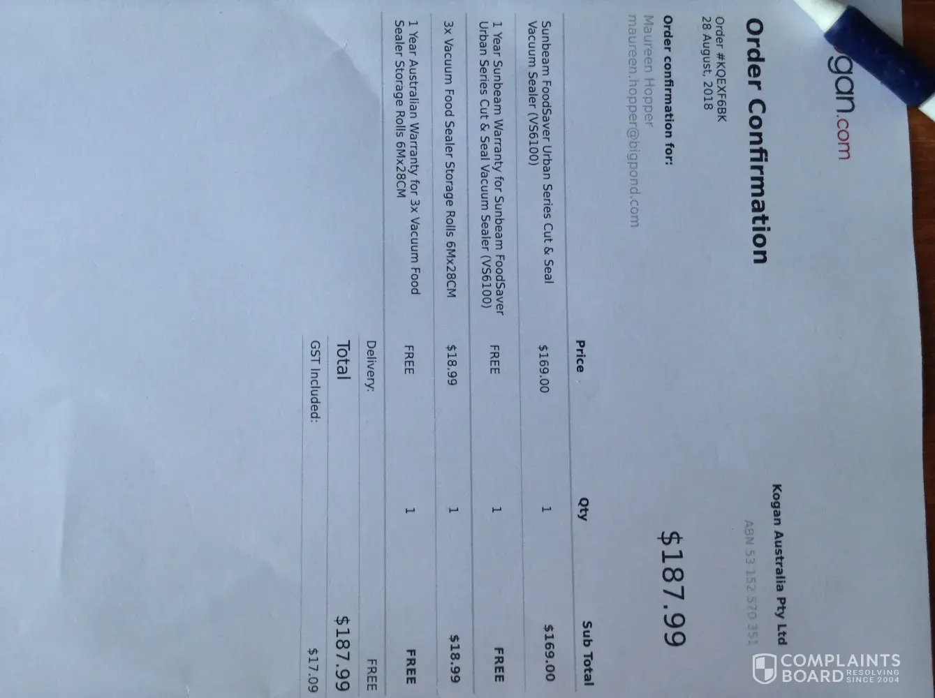 Update: WTF? I just got a Ship Confirmation from www.sunbeam.ca today at 5pm I cancelled the order this morning at 9:20 am.