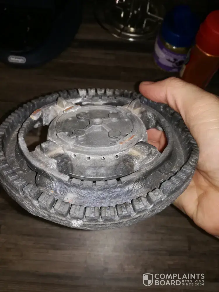 Hi bought a sunbeam gas hop a year and 3 months and the big burner MELTTED! I was buzy cooking food and the the gas just started coming out on the said and stared to melt my pot Handels to. Dont know it this could happen if it's sepouse to take the heat. Really dissepointed in this product I really liked the look of it but mad with my self beacuse I didn't took the other brand. I can't use the burner because the gas are not coming out evenly and I have to struggle to get it to light. Now I have to buy a new one the same size than this one! I won't buy sunbeam ever again. Because of this bad product that's not sepouse to melt but really melted
