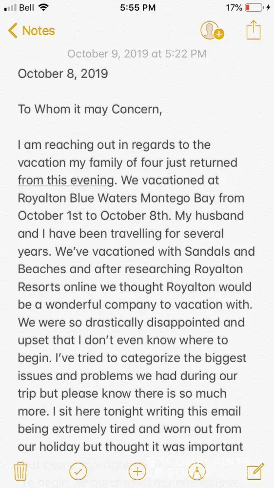 I'm sending a written complaint to Sunwing for their follow up and refund but i do not expect a reasonable response.