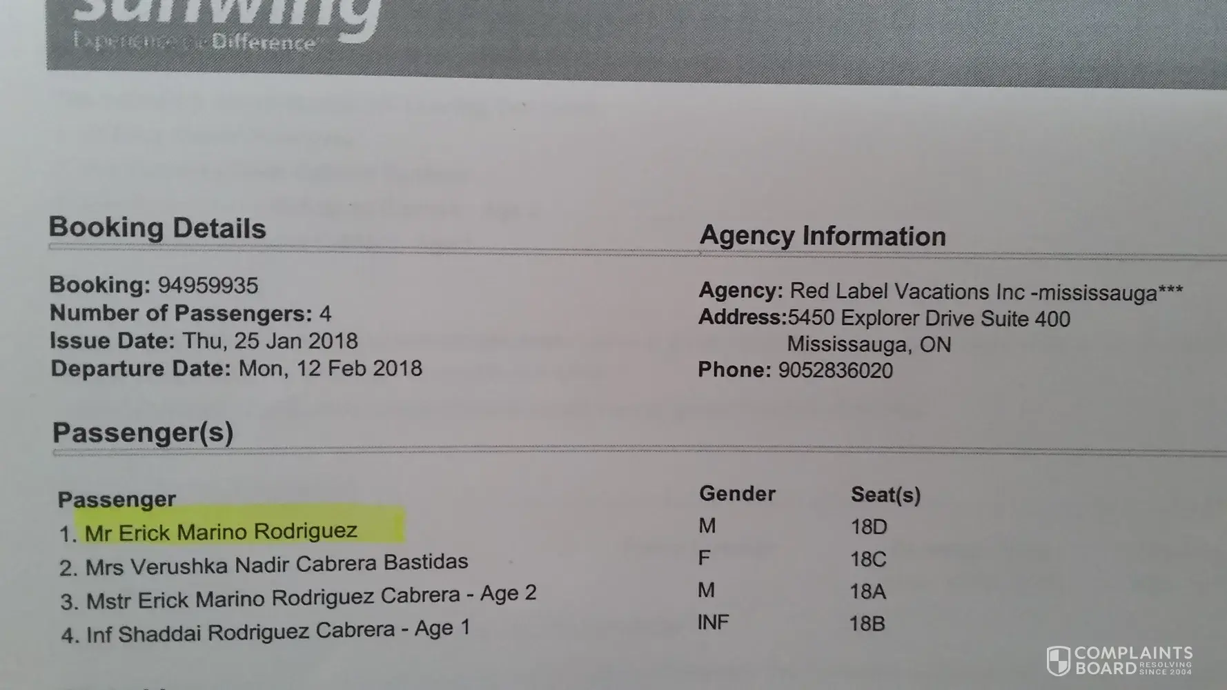 Most discussed Sunwing Travel Group complaints