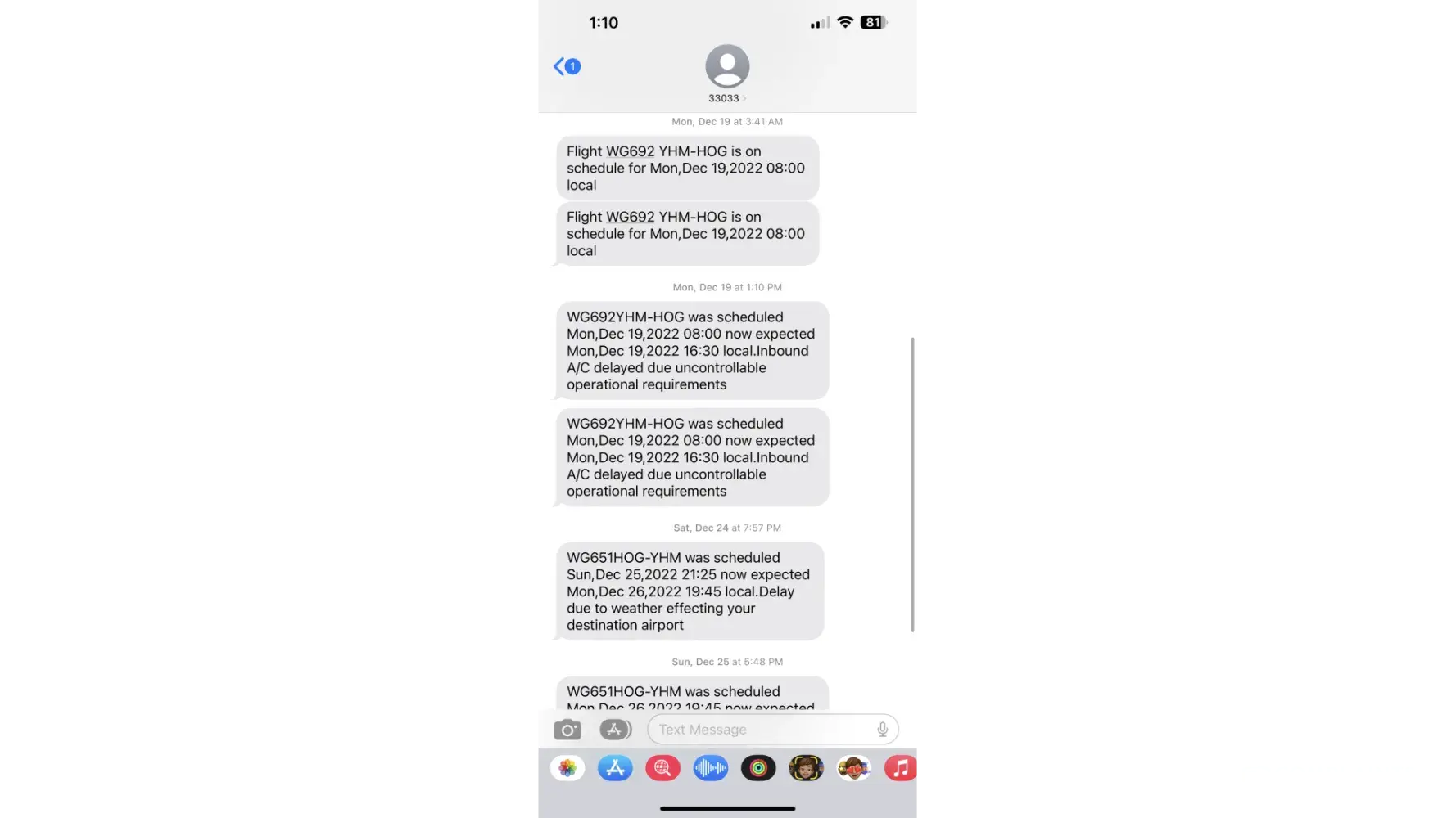 Flight WG 116 scheduled for 6:15 on Dec 24, 2022. Re-scheduled by Alert to 8:15.