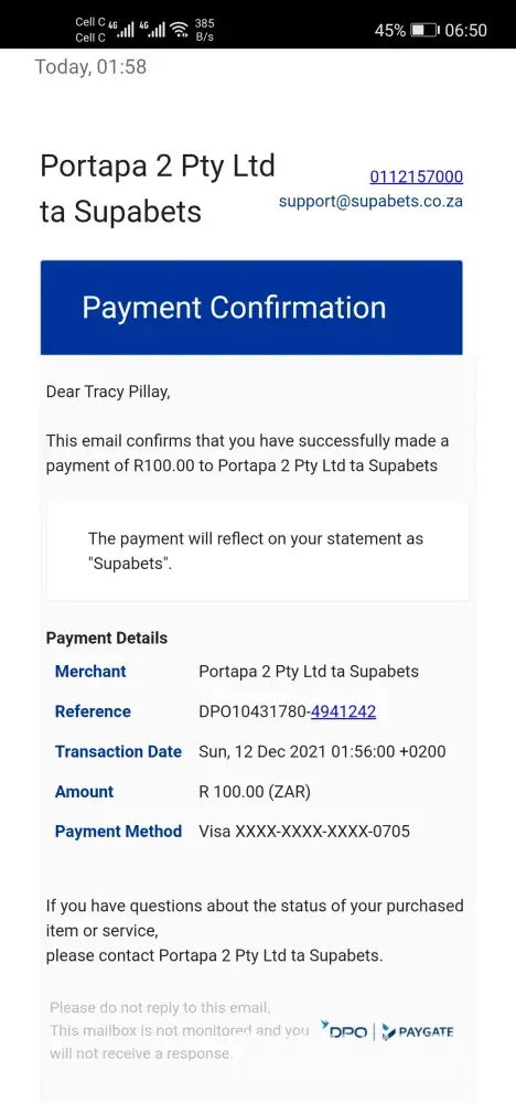 Supabets Johannesburg ZA is an internet scam: BE AWARE