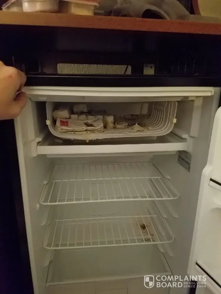 My family & I stayed 1 night 6/16/18 in room 210. The refrigerator had melted ice cream that had leaked to the bottom & the ice cream was still in the freezer. Clearly it had never been cleaned. We had to use an ice chest to keep our food in. The bathroom was dirty & had mold in the shower. There was a dirty sock (that did not belong to us) by the bed that I accidently grabbed with my bare hand while trying to find the remote! The pool had chunks of tile/concrete missing from the sides where my kids had to walk. The staff was rude and not helpful at all. The night shift desk person just sat at the desk and ate cereal (from the breakfast bar) and would duck into the back room any time a customer was coming through. Finally, as we were getting ready to leave, my daughter and I started noticing what we thought might have been mosquito bites on our bodies. Little red, itching places all over. I am a Registered Nurse and these were bed bug bites! I have had to thoroughly clean my car, my house, and all of our things to ensure that the bugs did not end up in our home. I will never stay nor let anyone I know stay at a Super 8 again! I feel that returning my money is more than fair after the nightmare our family has been through! My confirmation #87222EC000982