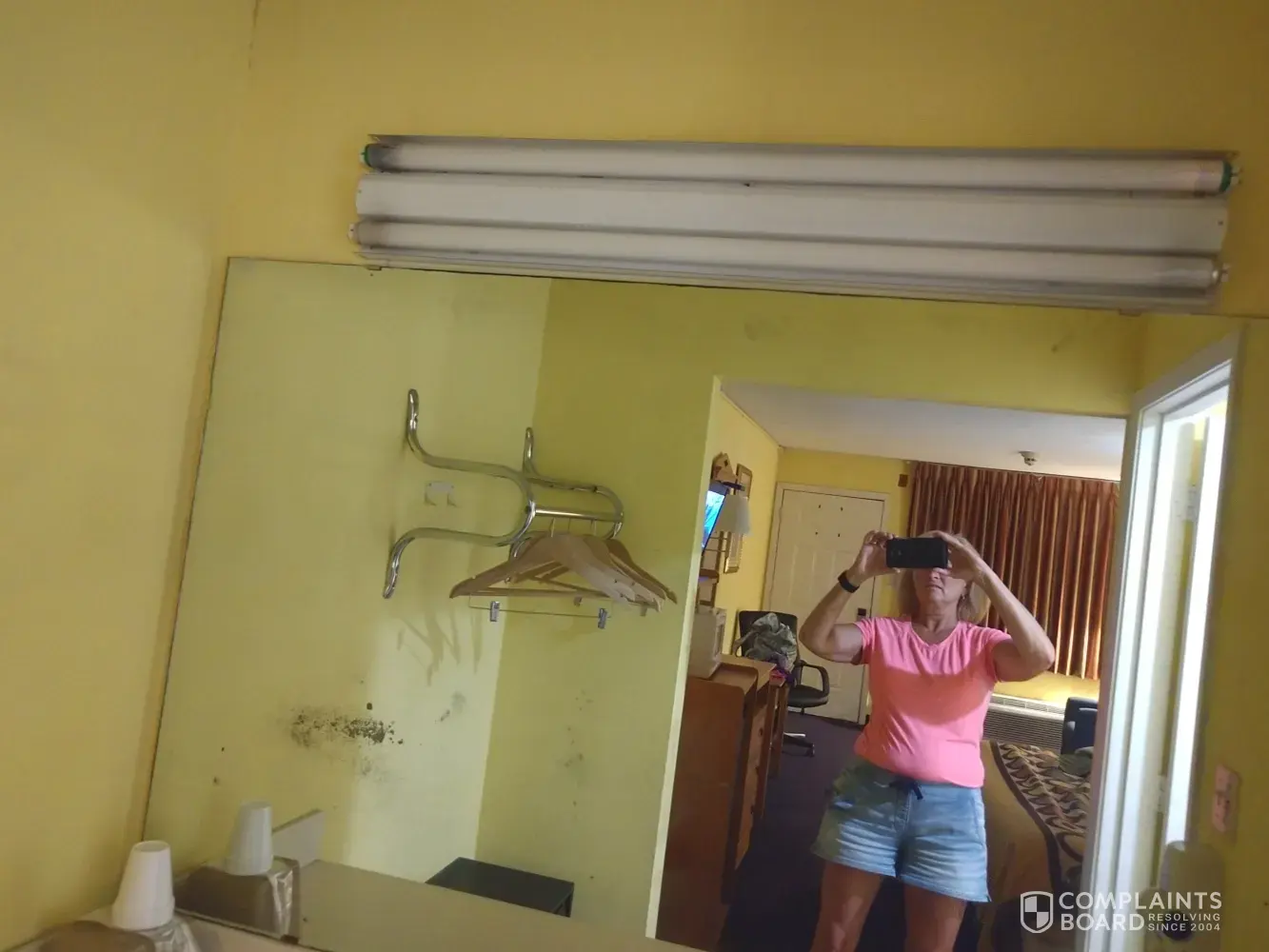 I was traveling, needed to rest, have used bookit.com, in past, I looked for hotels near me. This super 8 came up, as did the wyndam name, pictures looked ok. I did not have the opportunity to look up the reviews, my mistake!. I had a "bates motel" experience. I reserved the room via bookit.com, went into the hotel, noticed the outdated and miss mash interior, the employee said he had not received my reservation. I asked if I could use the restroom, he pointed at a he/ she room, it was messy. I certainly out and asked if could see this room, king size handicap non - smoking room. He gave me a key. I looked at the room, it was dirty carpet but the smell of mold was too intense, this I backed out and returned to the desk employee. I told him it was moldy and I am asthmatic. I asked for a void or refund, was told, "no refund!" so, I went to the next room, the smoke detector was covered in smoke residue, the carpet nasty and torn in places, the lamp shade had holes, the light fixtures we're peeling paint, stuffing coming out of the chair, sink light didn't work, cups not individually wrapped, the shower rod was coming out of the wall, the grime, was all in the shower, cob webs on the walls and ceiling, door did not seal you could see the light and an I k pen could fit from the door knob downward to floor, only the electronic key "lock" and a flimsy chain was my security provided by the hotel! I was afraid to bring in anything for fear of transporting something else. I slepted for a little over an hour in my clothes, with my gun. I asked another customer the next morning how his stay was at the bates motel, he replied they came very late too, but his wife refused to stay unless he got a gallon of bleach! I write this after being offered $25 from the manager of this hotel via bookit.com personnel through my complaint and bookit.com offered me $30 to "solve" the issue and the manager did not want me to say anything negative. Well, I had to suck it up that night, but my voice nor my concern for those folks who have less money than I and have more serious handicaps than i, may have small children, and none should be subjected to this type of conditions. I expected a simple, secure, clean, basic room. I got none of this if one element is missing then I received no value for my money/patronage. I should hope that if this business wants to run on your back/ name then wyndham being the ' parent' company you, too want the basics in hotel management to be presented for the market price. Do note, this hotel is in the boondocks, not a "happening" place, so don't be fooled by the price. This hotel is false advertising by using photos over 30 years old, and I am certain could not pass a simple safety inspection, much less a health inspection.