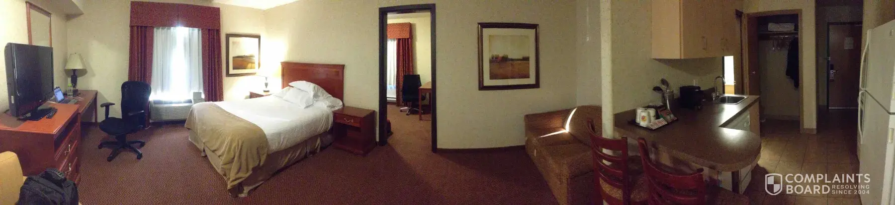 I booked a 2 bedroom family suite with a Queen bed and bunk beds. I got a 1 bedroom suite with the bunk beds in the bedroom and the queen bed in the living room. The hotel says that is their version of a 2 bedroom because it has 2 beds. Hotels.com says the hotel says I'm in a 2 bedroom, but won't allow me to send pictures and won't book a 2 bedroom in another hotel at no extra cost to me. They hang up once I get to the supervisor. The hotel will not provide an actual 2 bedroom even though both of the front office staff told me they actually have rooms with 2 bedrooms.. real 2 bedrooms not just beds in the living room because the one actual room like that is being renovated.
